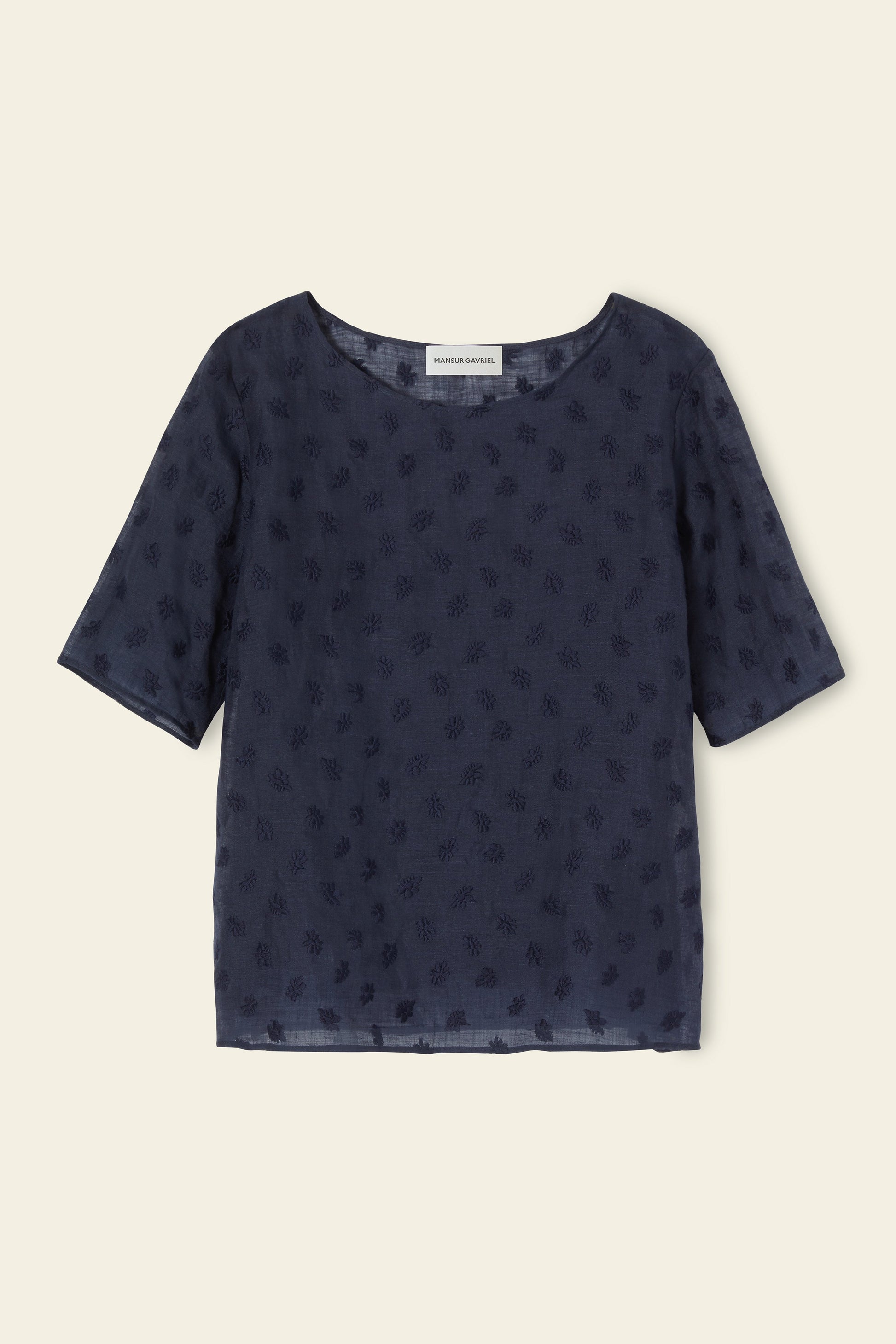 Floral Embroidered Linen Short Sleeve Blouse - Blu