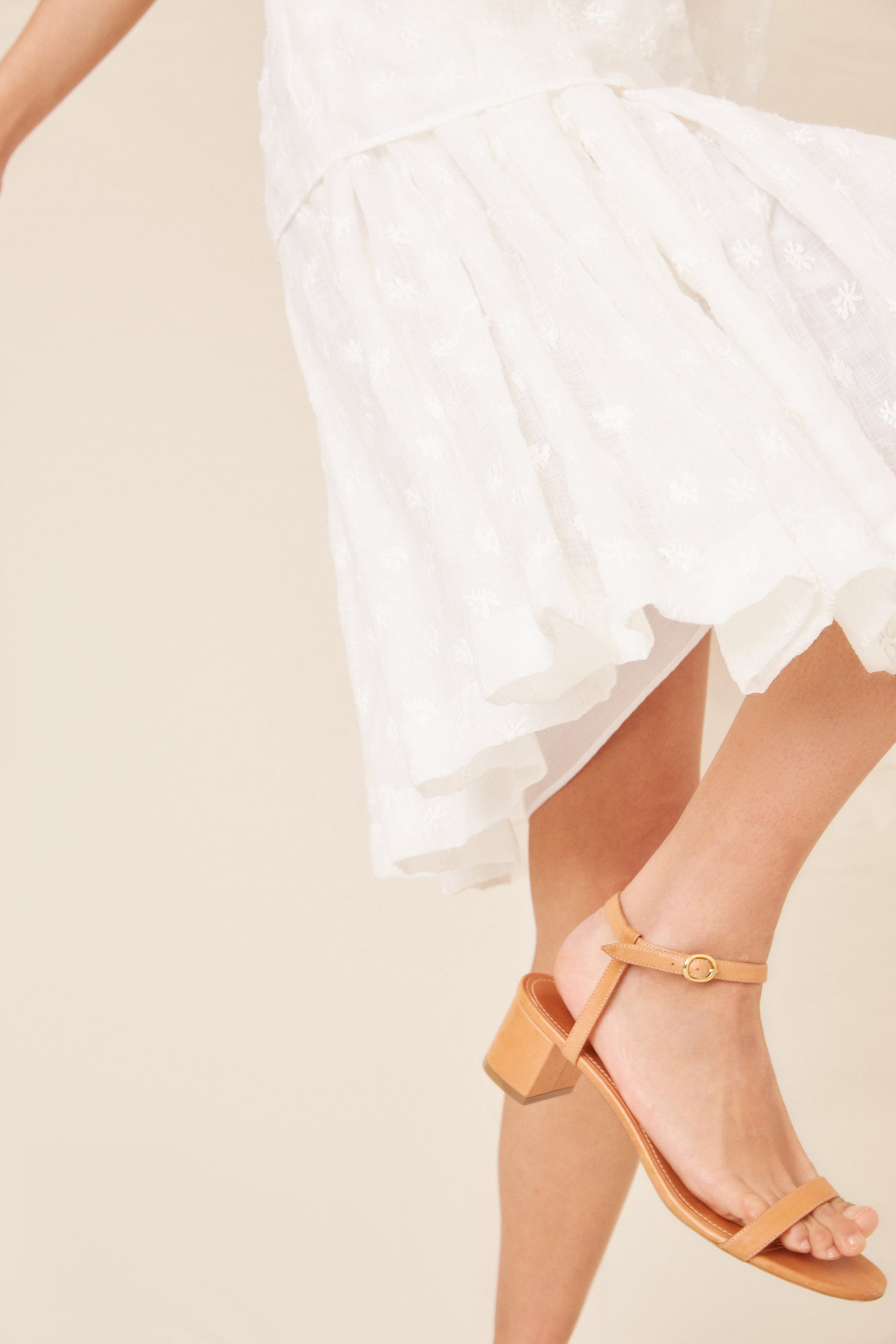 Floral Embroidered Linen Short Sleeve Blouse - White